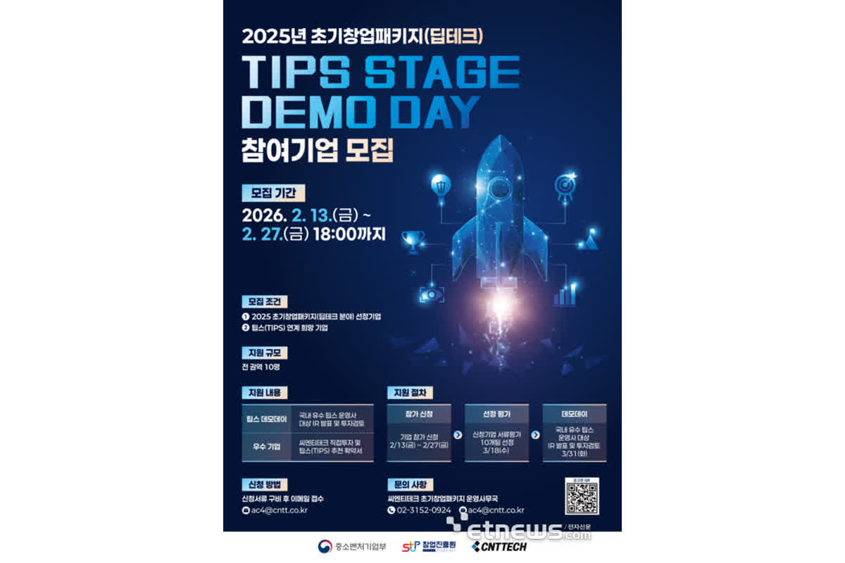 씨엔티테크, 초기창업패키지 TIPS 스테이지 데모데이 참가기업 모집