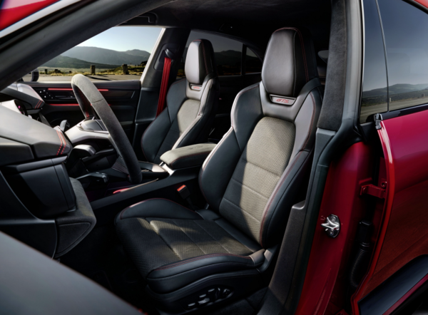 실내는 블랙 가죽과 레이스텍스 소재를 중심으로 구성됐으며, 운전석에는 18방향 전동 스포츠 시트가 기본 장착됩니다. 스티어링 휠, 헤드레스트, 디지털 크러스터에는 모두 'GTS' 로고가 새겨져 있습니다.