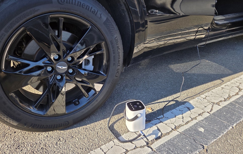 노트북이나 이어폰 등 사용하다 보면 충전해 놓은 줄 알고 들고 왔더니 충전이 안 돼있는 경우 한 번씩 있으시죠. 타이어 또한 아침에 타이어 공기압 넣으려고 했는데 안되면 골치 아프겠죠. 하지만 이 제품은 시거잭 충전기가 기본으로 제공되는데 넉넉한 길이 덕분에 앞/뒤 타이어까지 케이블을 끌어올 수 있고 충전하면서 사용할 수 있는 편의성까지 갖춘 제품이라 겨울철 필수템으로 추천!