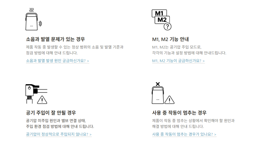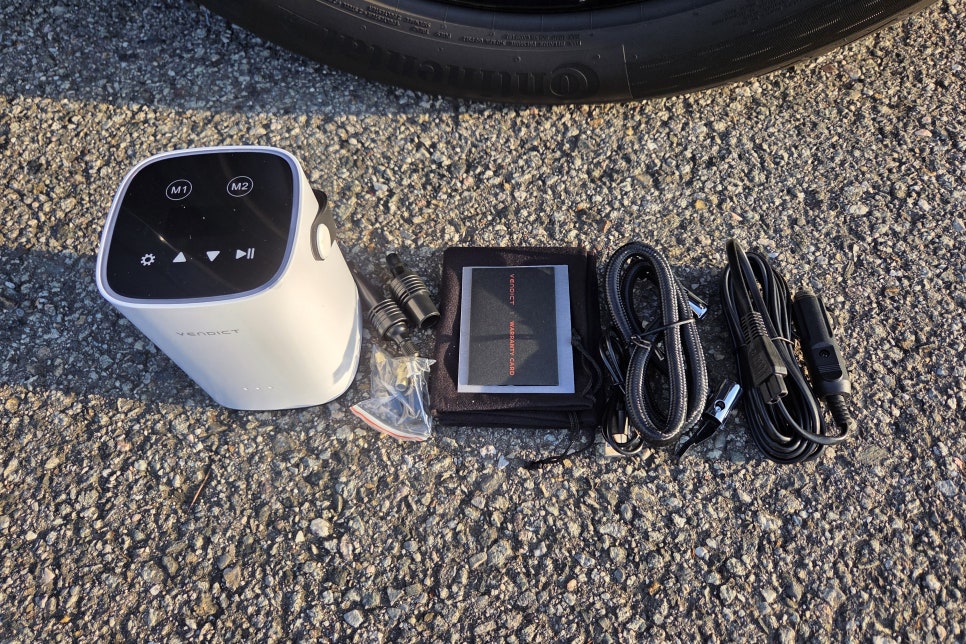벤딕트 타이어 공기압 주입기 구성품으로는 공기압 주입기 본품과 6가지의 다양한 노즐, 수납 파우치, E-메뉴얼 카드, 60cm 에어호스, 시거잭 충전케이블, USB 케이블로 알차게 구성되어 있네요. 특히 동봉된 워런티 카드의 QR 코드를 스캔하면 제품 사용 설명서 및 주의 사항을 E-메뉴얼로 직관적으로 확인할 수 있다는 점이 만족스러워 적극 추천드릴 수 있는 제품이죠.