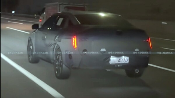 테일램프 역시 신형 그랜저와 패밀리룩을 공유하는 'H 그래픽'을 적용하며 존재감 있는 모습을 보여줍니다. 램프는 차체 끝으로 최대한 확장되어 차량의 폭을 넓어 보이게 만들고, 리어범퍼 하단은 볼륨감 있는 디퓨저 구조로 역동적 분위기를 강조합니다. 야간 주행 중 포착된 테스트카는 빛의 연출만으로도 차체의 성격을 명확히 드러내는 강렬함이 있어, 출시 전부터 소비자들 사이에서 큰 화제를 모으고 있습니다.