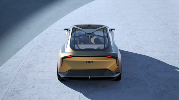 측면부는 더 실험적입니다. 최근 폴스타 5에서 볼 수 있었던 조형과 닮은 직선 중심의 바디 라인, 근육질 리어 펜더, 기하학적 패턴을 갖춘 글라스 루프 등 양산차에서는 쉽게 보기 힘든 요소들이 적용됐습니다. 후면부에는 부메랑 형태의 테일램프와 통합 스포일러가 자리하며, 단순한 GT 세단이 아니라 '새로운 시대의 그랜드 투어러'를 구현하겠다는 기아의 메시지를 담고 있습니다.