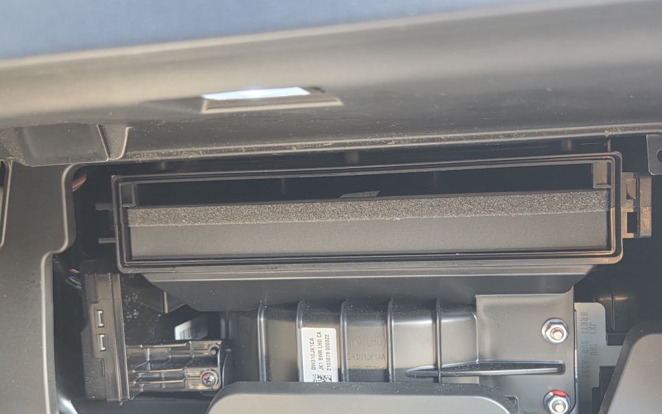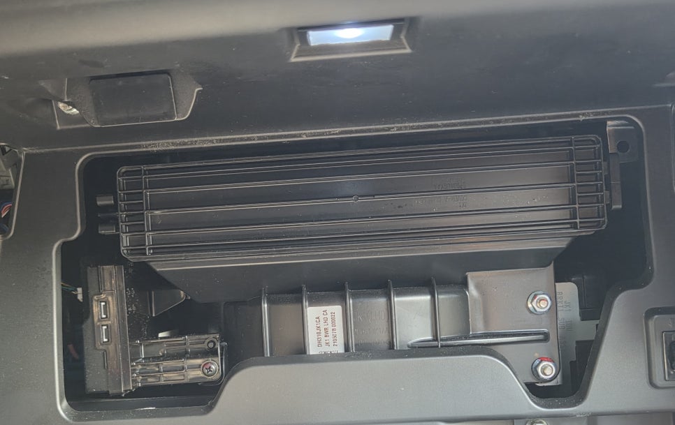 자동차 에어컨 필터를 교체하기 위해서는 먼저 글로브 박스 사이드 면에 고정된 부분들을 분리해 주셔야겠죠. 양쪽의 글로브박스 댐퍼는 돌려서 분리하면 되고 고정되어 있는 힌지 핀은 힘으로 당겨주시면 쉽게 빠지게 됩니다. 그리고 에어컨 필터 커버가 보이는데 고정된 방향 말고 반대편을 잡고 당겨 주시면 분리할 수 있게 되어 있죠.