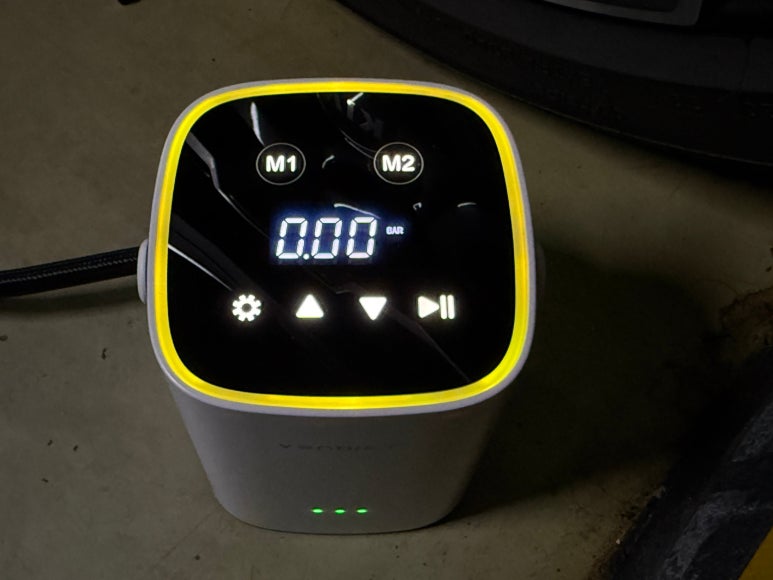 저는 승용차 적정 공기압인 35 PSI에 맞춰 M1 버튼을 누르고 작동시켰습니다. 알아서 설정된 수치까지 공기가 주입됩니다.