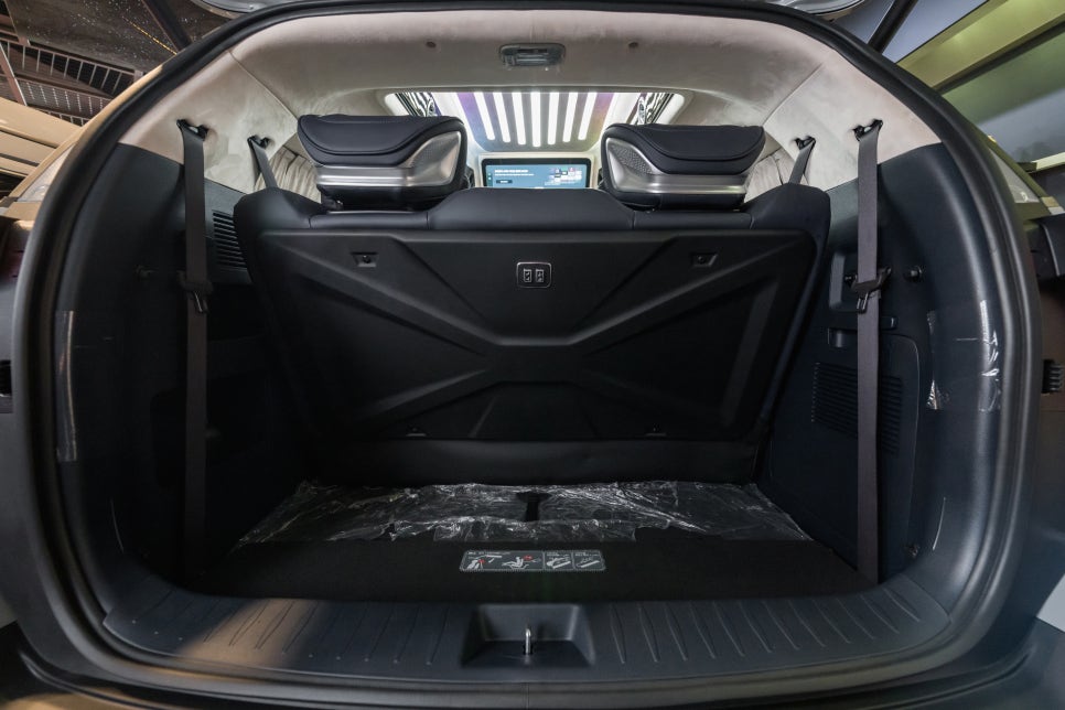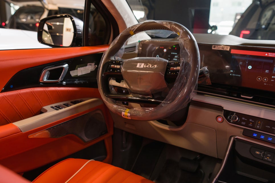 반면 카니발 하이브리드 4번 패키지 같은 경우 2열 편의성을 크게 강조했는데요. 독립으로 구성되어 있는 VIP 시트에는 멀티 헤드레스트와 시트 각도 조절로 최적의 시트 포지션을 제공하고 장거리 운전에도 편안하게 갈 수 있게 언더 서포터도 갖추고 있죠. 양쪽 사이드 암레스트쪽에는 오토 컨트롤러와 냉온 기능이 들어간 컵홀더, 무선 충전 시스템이 포함되어 있죠. 3열에는 마찬가지로 전동형 통합 시트가 탑재되어 있습니다.