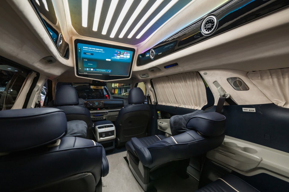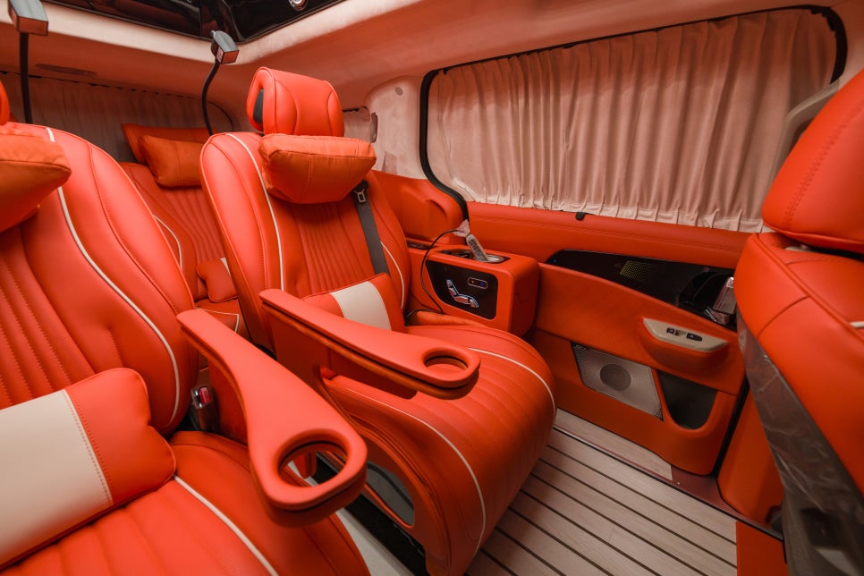 CN모터스 카니발 하이리무진은 2열에만 치중된 편의성이 아닌 1열과 3열 4열까지 모든 좌석의 편의성을 고려했는데요. 운전석과 동승석에도 푹신한 나파 가죽이 들어간 리무진 시트가 탑재되고 센터콘솔에도 푹신한 프리미엄 소재의 콘솔 트리밍이 들어가죠 그리고 모든 좌석에는 목 쿠션 및 허리 쿠션이 기본 사양으로 잘 갖춰져 있어 장거리 주행에도 보다 편안한 여행을 즐기실 수 있습니다.