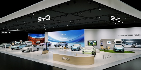2025 서울모빌리티쇼에 마련된 BYD 자동차 전시장 사진.