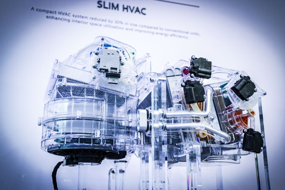 기존 대비 높이를 30% 이상 낮춘 슬림 HVAC도 공개됐다. 소형화된 구조를 통해 실내 공간 활용성을 극대화했으며, 경량화로 전비 개선 효과까지 동시에 달성했다.