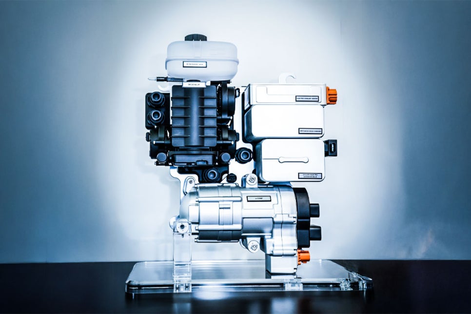 특히 세계 최초로 10개 포트 구조의 ‘데카 밸브(Deca Valve)’를 적용해 배터리와 구동 모터 냉각, 실내 냉·난방 등을 포함한 총 7가지 작동 모드를 유연하게 제어할 수 있도록 했다. 이를 통해 기존 대비 부품 수는 30% 줄이고, 공간 활용성은 15% 이상 개선했다.