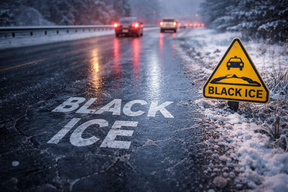 밤새도록 눈이 펑펑 내리고 새벽 기온이 영하로 크게 떨어지는 경우 블랙 아이스 위험이 있을 수 있는데요. 특히 고갯길, 강가 근처 도로, 고가도로, 터널 입출구 또는 산간지역 등 해가 떠 있더라도 그늘이 진 곳은 조심해 주셔야 됩니다. 블랙아이스 예방법은 따로 크게 없습니다 무조건 천천히 운전, 차간 거리를 길게 유지, 핸들 크게 꺾지 않기. 그리고 혹시 모르니 스프레이 체인 하나 정도 구비해 주시면 좋습니다.
