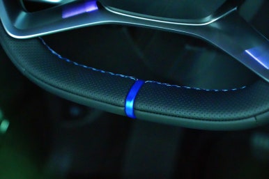 손에 착 감기는 D컷 스티어링 휠. 파지감이 훌륭하고, 곳곳에 들어간 블루 컬러 포인트가 "나 좀 달릴 줄 아는 차야"라고 말하는 듯 스포티한 감성을 더해줍니다.