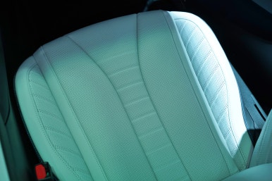 문을 열자마자 반겨주는 '퍼스트 클래스 라운지 시트'. 나파 인조 가죽의 질감이 매우 부드럽고, 착좌감이 고급 소파처럼 편안합니다. 8-way 전동 조절을 지원해 내 몸에 딱 맞는 포지션을 찾을 수 있습니다.