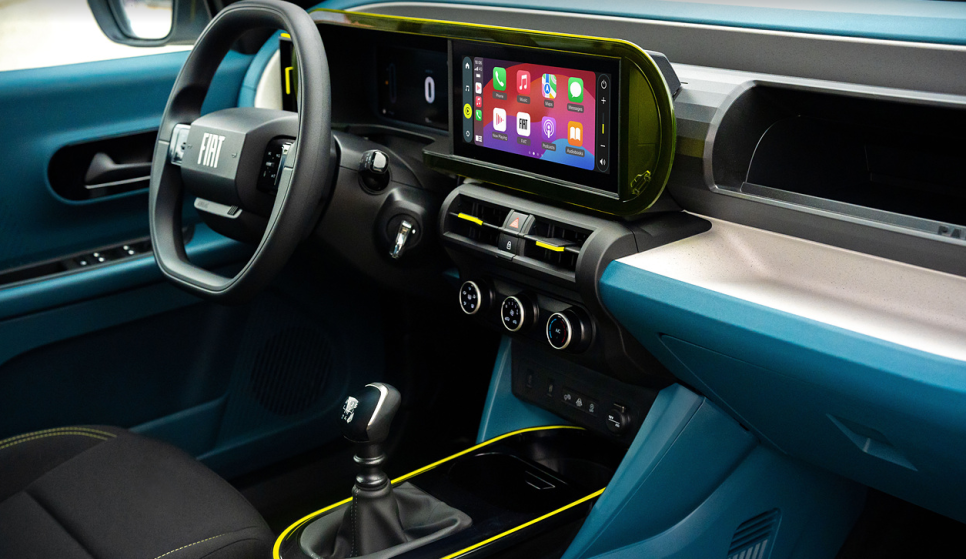 피아트 그란데 판다의 실내디자인은 피아트 특유의 유쾌한 디자인을 만끽할 수 있는데요 복고풍 감성이 현대적으로 재해석된 디자인이 운전자와 탑승자의 기분까지 업 시켜주는 요소입니다 대시보드는 단순하면서도 노란색 컬러 포인트를 적용해 재미를 줬고 10인치 디지털 계기판과 10.25인치 센터 디스플레이는 직관적으로 탑재되어 있습니다.