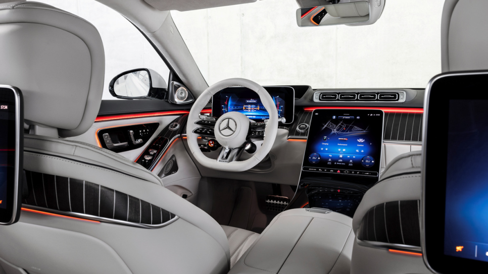 메르세데스 AMG S 클래스 E 퍼포먼스의 실내 디자인은 S 클래스의 고급스러운 감각에 AMG의 스포티한 감각이 한데 어우러져 있습니다. 센터에는 12.8인치 대형 OLED 센터 하이퍼 스크린 디스플레이와 최신 MBUX 시스템을 갖췄고 AMG 및 하이브리드 전용 테마를 제공하고 있죠. 그리고 디지털 계기판, 증강 현실 헤드업 디스플레이 등 고급스러운 분위기에 현대적인 구성의 조화가 돋보입니다.