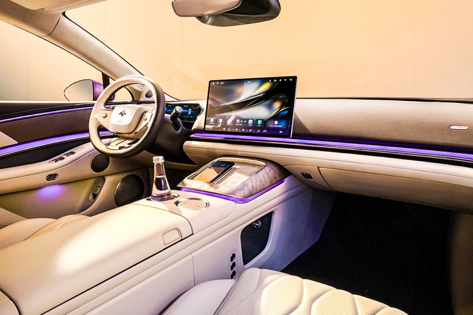 특히 ‘2+1’ 좌석 시스템이 적용된 4인승 구성은 버튼 조작으로 2열 중앙 콘솔이 대형 캐비닛 형태로 전환된다. 별도 터치스크린, 무선 충전 패드, 수납 공간이 포함된다.
