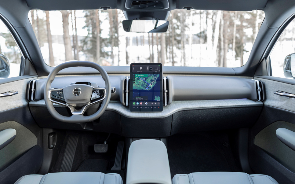실내 디자인을 보시면 미니멀하면서도 우아한 감성을 보여주고 있죠. 특히 도어 트림과 대시보드 라인에는 아마 섬유 장식으로 스칸디나비아 느낌을 더욱 간접적으로 경험할 수 있습니다. 스포티한 감성의 3-스포크 테일러드 스포츠 스티어링 휠에는 컬럼식 변속 레버가 탑재되고, 별도 계기판은 없는 대신 12.3인치 독립형 대형 터치스크린이 탑재되죠.