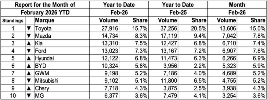 [더구루=정현준 기자] 현대자동차와 기아가 올해 2월 호주 시장에서 나란히 점유율을 끌어올리며 탄탄한 실적을 기록했다. 기아는 전통 강자 포드를 제치고 누적 판매 3위에 올라섰고, 현대차 역시 스포츠유틸리티차(SUV) 라인업 호조에 힘입어 '톱5' 자리를 지켰다.
