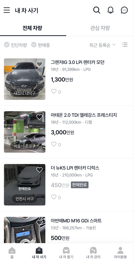 내 차 판매 등록만 해도