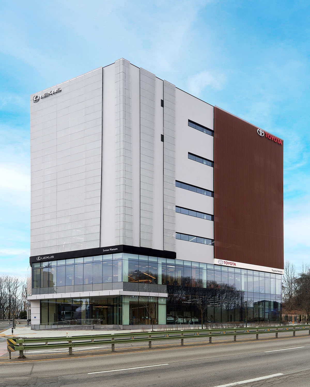 해당 시설은 연면적 1만 1570㎡(약 3500평) 규모의 지하 2층, 지상 7층 건물로 전시장과 고객 라운지, 종합 서비스센터를 갖췄다. 브랜드별 공간과 동선을 분리했으며, 옥상에는 태양광 발전 설비를 도입해 건물 전력의 일부를 자체 생산한다. 서비스센터는 렉서스 6개, 토요타 4개 등 총 10개의 워크베이를 마련해 월 최대 1090대의 정기점검 및 일반 정비가 가능하다.
