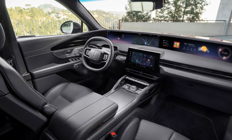 링컨 노틸러스 하이브리드 실내를 보면 가장 먼저 48인치 대형 파노라마 디스플레이가 눈에 띄죠. 그리고 아래에는 공조 시스템과 시트 기능 및 차량 설정을 조작할 수 있는 11.1인치 터치스크린까지 탑재되어 있습니다. 도어 트림과 센터 콘솔 등 가죽과 우드, 알루미늄 소재를 적절히 사용해 고급스러운 분위기까지. 센터 콘솔에는 버튼식 변속기, 크리스탈 다이얼 등 센터 콘솔도 깔끔하게 잘 되어 있죠. 화려함보다는 간결하면서, 실용적인 모습이 눈에 띕니다.