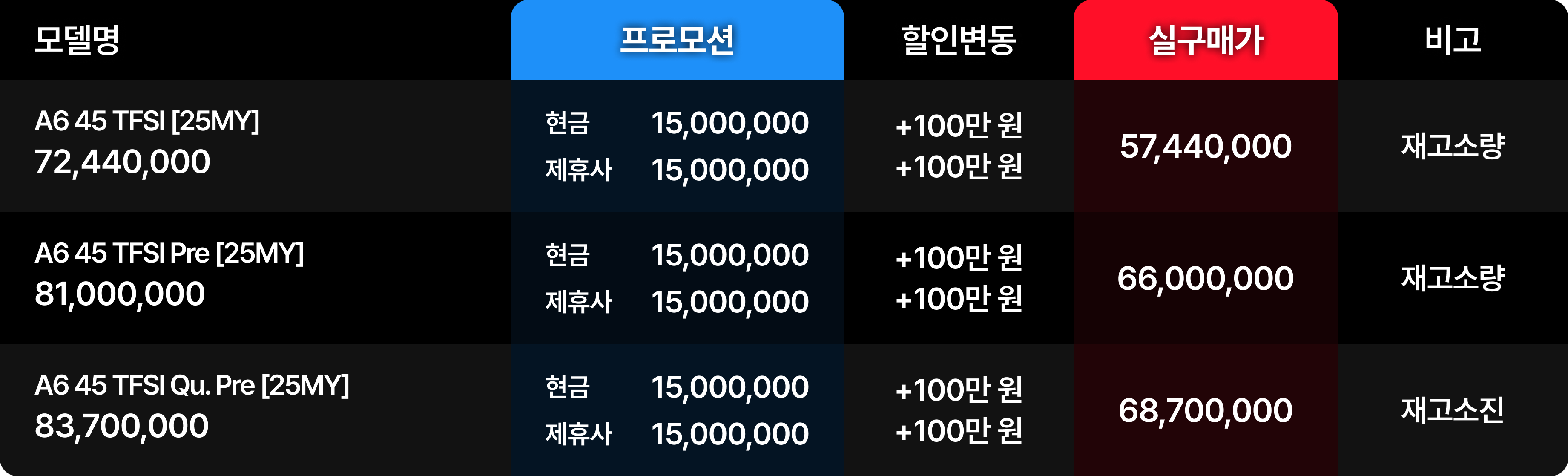 아우디 A6 / A3 / A5 / S5 / A7 / A8 2026년 3월 프로모션 및 실구매가 분석