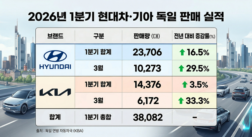 10일 독일 연방 자동차국(KBA)에 따르면 현대차는 올해 1분기 독일에서 총 2만3706대를 판매했다. 전년동기 대비 16.5% 증가한 수치다. 3월에는 전년동월 대비 29.5% 증가한 1만273대를 판매, 2023년 8월 이후 3년여만에 월간 판매량 1만대를 돌파했다.