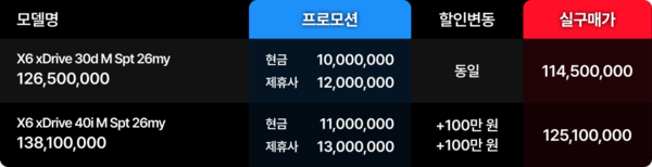 같은 SUV라도 성격은 분명히 다릅니다. X5는 패밀리 SUV로서의 균형감이 강하고, X6는 쿠페형 SUV 특유의 스타일과 존재감이 더 앞섭니다. 다시 말해, 가족과 함께 타는 여유 있는 SUV를 원한다면 X5가 더 자연스럽고, 실용성에 감성까지 더한 SUV를 원한다면 X6가 더 강하게 다가올 수 있습니다. 이처럼 BMW는 이번 프로모션에서 서로 다른 소비자 취향을 동시에 겨냥하고 있습니다.