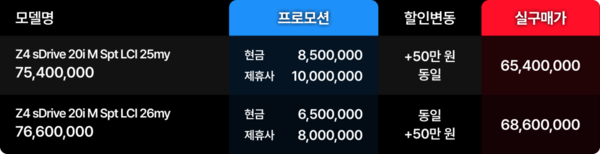 오픈카는 늘 대중적인 차종은 아니지만, 봄이라는 계절이 주는 힘은 분명합니다. 평소에는 멀게 느껴졌던 모델이 이 시기에는 훨씬 현실적인 고민의 대상으로 들어오기도 합니다. BMW가 이번 4월 프로모션에서 Z4를 전면에 내세운 이유도 바로 여기에 있어 보입니다.