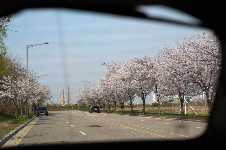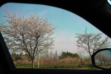 측면과 후면 필름 농도는 15%로 선택했습니다. 창밖으로 보이는 선명한 벚꽃들이 참 아름답습니다.