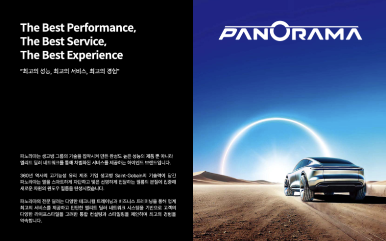 파노라마라는 브랜드가 다소 생소하게 느껴질 수 있지만, 그 뿌리를 들여다보면 신뢰는 확신으로 바뀝니다. 파노라마는 360년 전통을 자랑하는 세계 1위의 고기능성 유리 제조 기업, 생고뱅(Saint-Gobain) 그룹의 기술력을 바탕으로 합니다.
