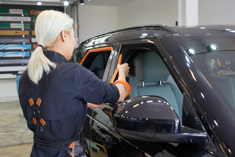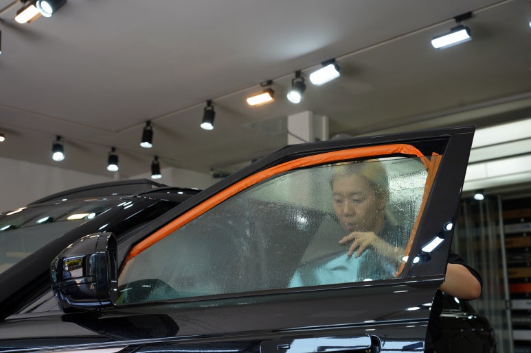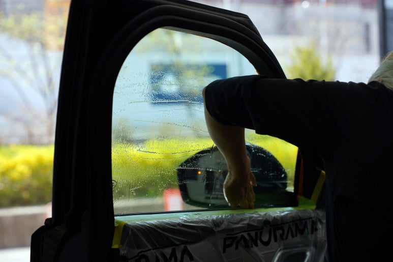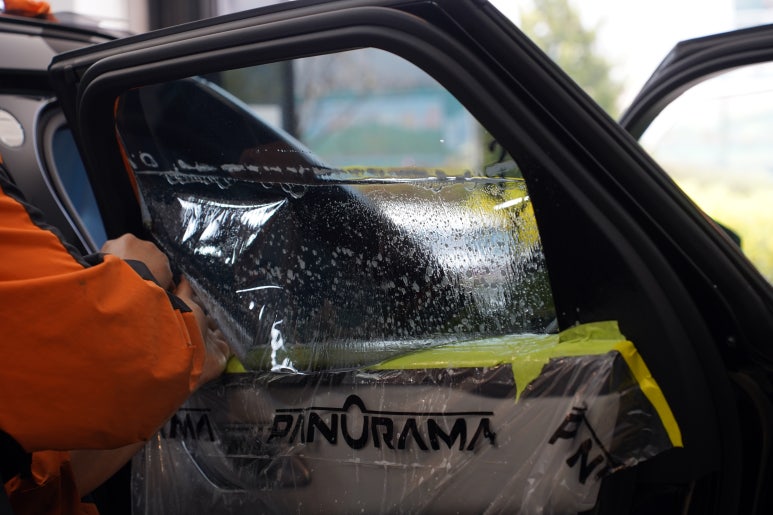 깨끗해진 유리에 새로운 윈도우 필름인 파노라마 럭스 R이 부착되기 시작했습니다. 인스톨러의 손길에서 느껴지는 스킬이 예사롭지 않았습니다.
