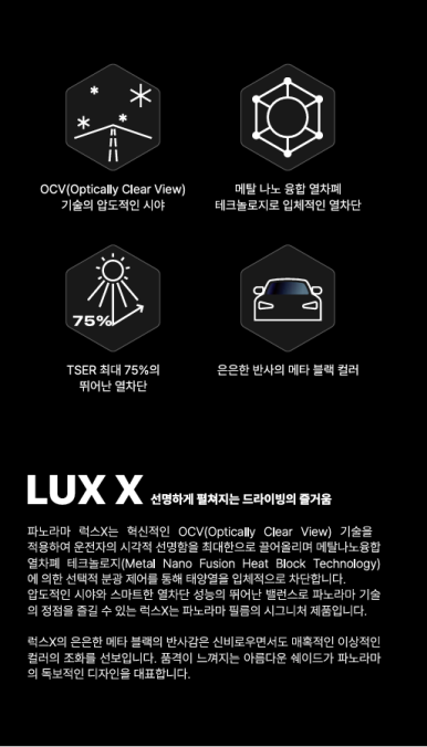 일부러 반사가 없는 비반사 필름인 럭스 R을 선택했는데, 차량의 클래식하면서도 세련된 블랙 컬러와 아주 잘 어우러집니다.
