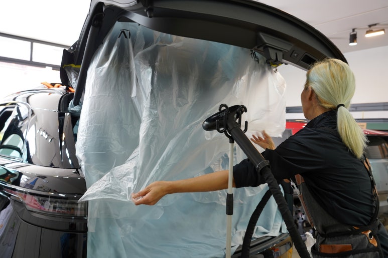 특히 인상 깊었던 점은 남성 사장님과 함께 호흡을 맞추는 여성 인스톨러분의 내공이었습니다. 마스킹 작업부터 복장까지 완벽한 프로의 모습이더군요.