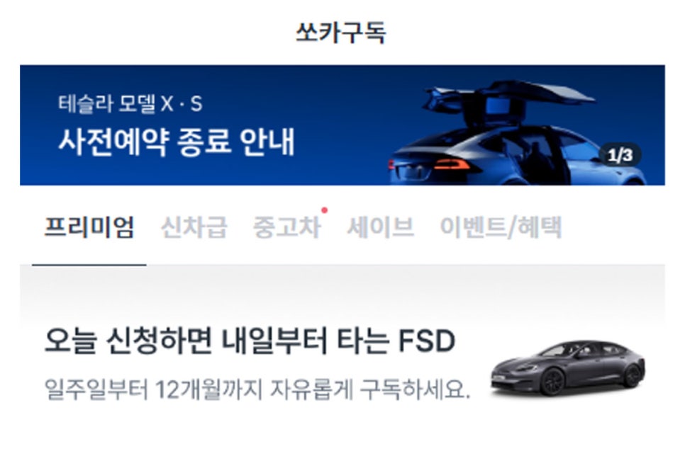 테슬라 – 출처 : 쏘카구독